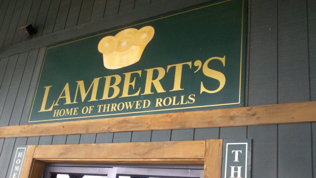 - Lambert’s Café: Located in Ozark, about 40 minutes away, “The Home of Throwed Rolls” is well worth the drive. Bad grammar aside, Lambert’s is a local secret. Yes, they do literally throw the amazing, light and fluffy rolls at you- so be sure to catch it! Friendly service, and great southern food has made Lambert’s a favorite for decades.