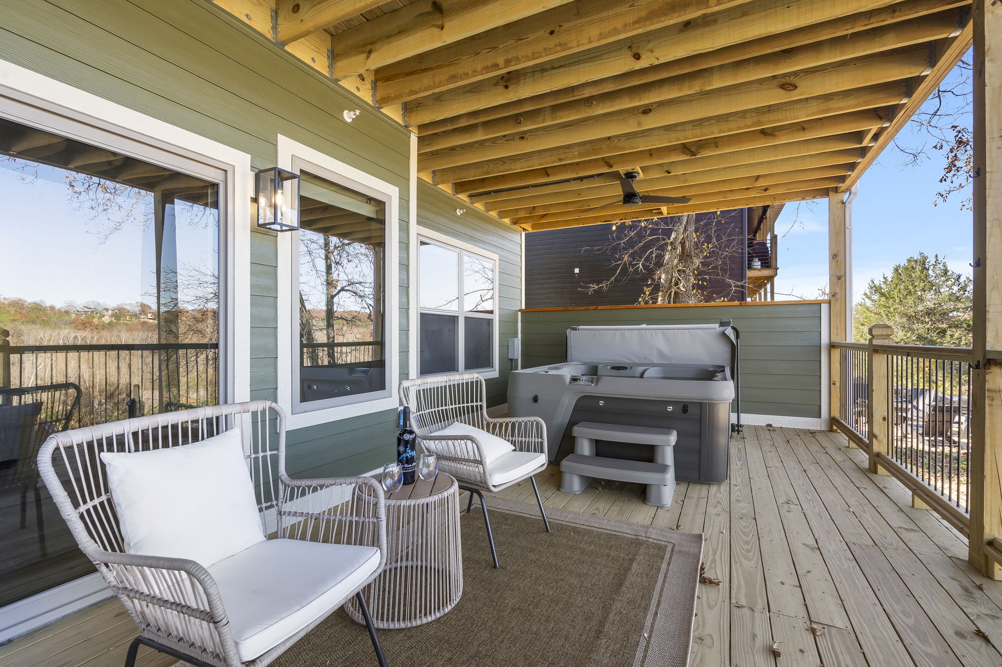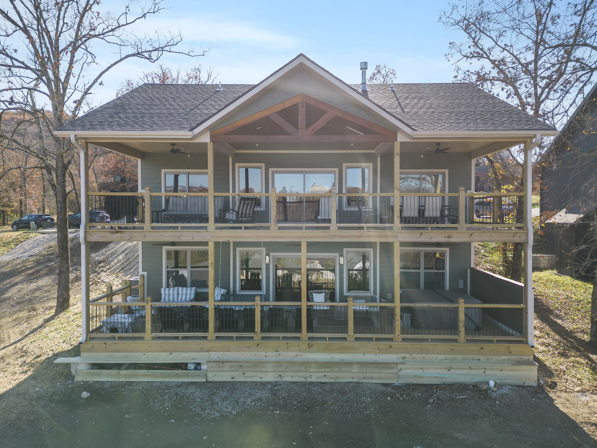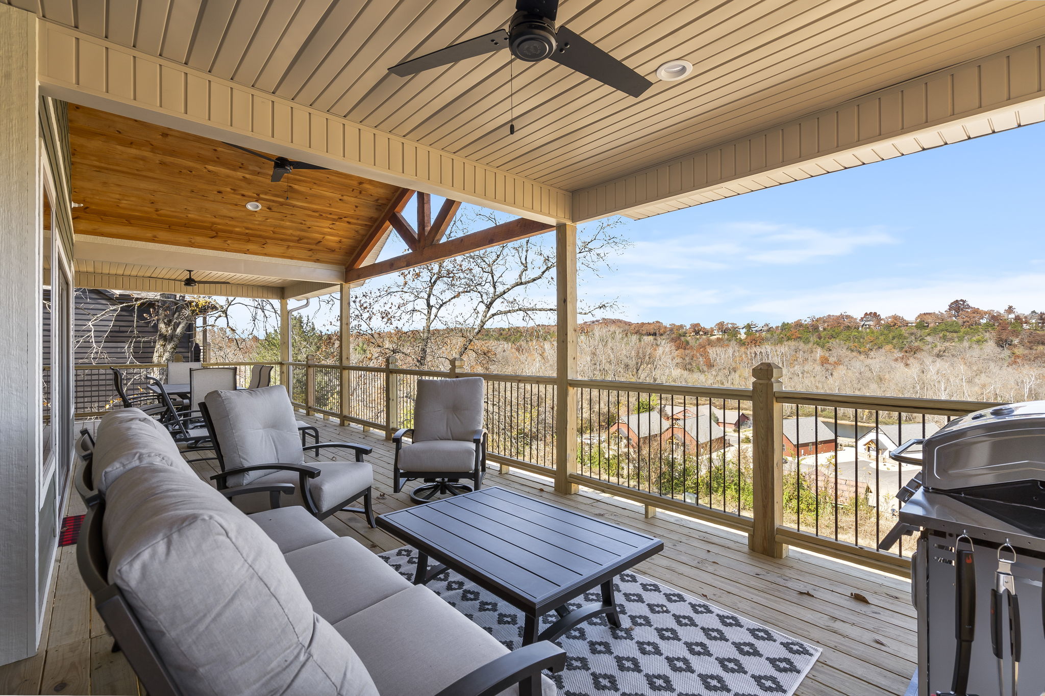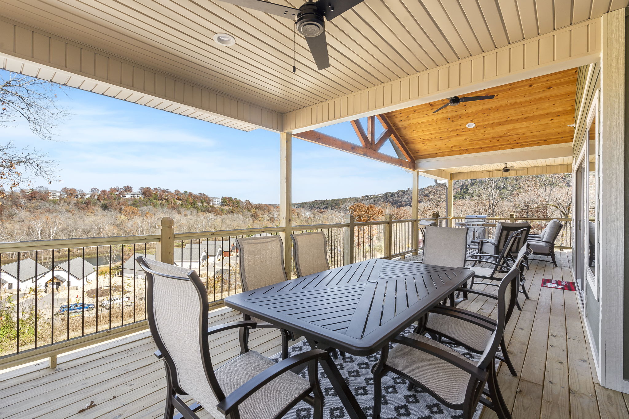 • Expansive decks, patios, or porches with stunning Ozark views